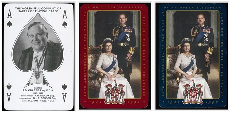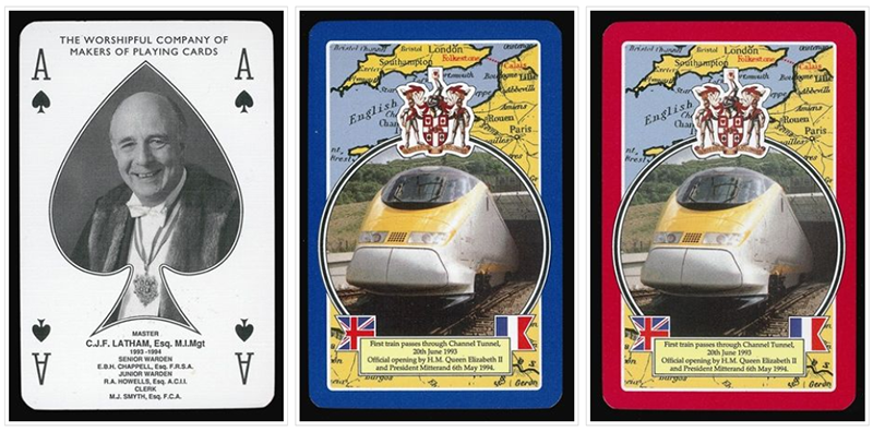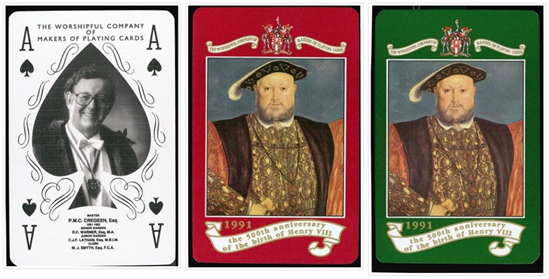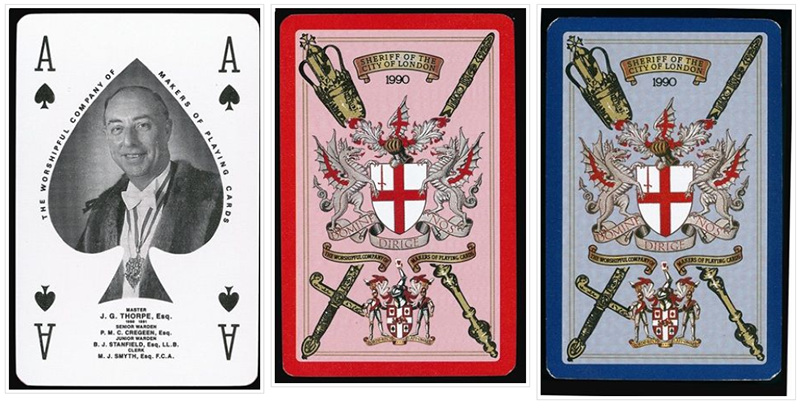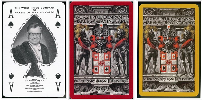 A Goodall style Ace of Spades with Master's portrait superposed. Special Joker adapted from a Goodall Whist Scorer. Design by Clive Abbott.