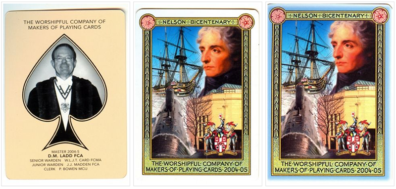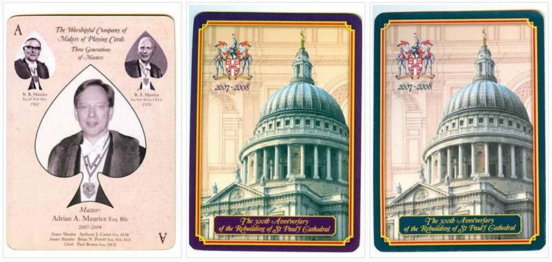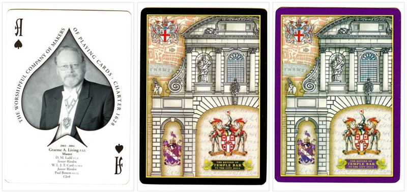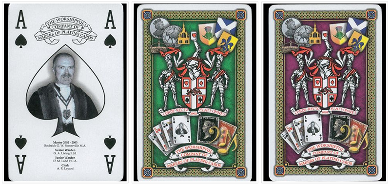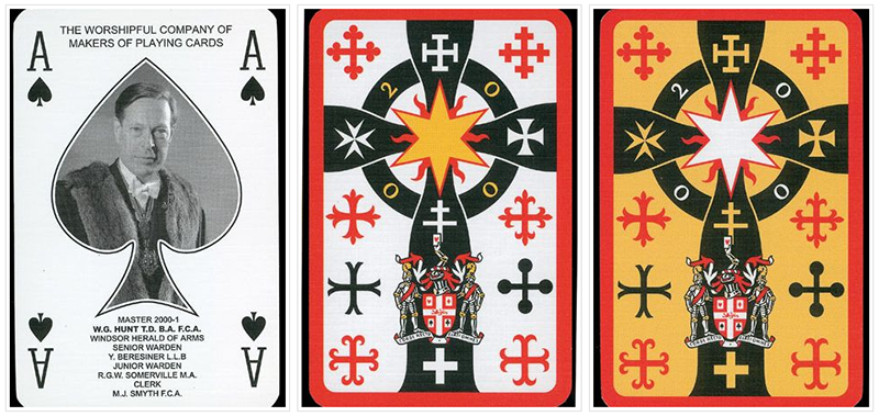 Additional packs were printed by Carta Mundi for charity without the Master's Ace of Spades and the Company's Coat of Arms.