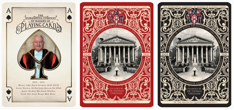 The Kings show historic buildings in the city built in the 1800’s and early 1900’s and still surviving today. The Queens depict new buildings built in the late 1900’s and early 2000’s with a ground- breaking style suitable for trading activities. The Jacks show images of the architects behind these buildings both new and historical. The Jokers depict the design of the gates of the current Royal Exchange paying homage to Thomas Gresham with the letters TG (Thomas Gresham).