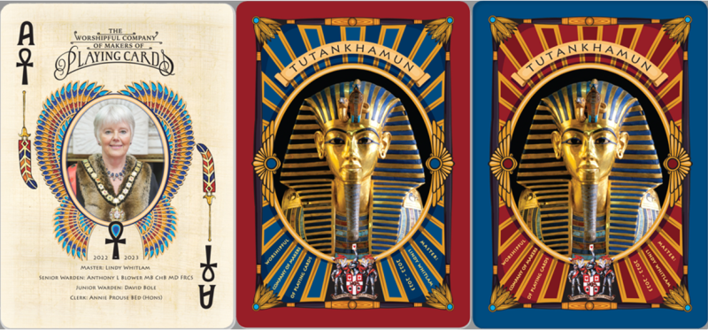The double box contains a booklet and two sets of cards. The cards can depict only a few of the artefacts and treasures to come out of the tomb of Tutankhamun. They are designed as a non-standard pips pack depicting some of the artefacts and the Royal Family.